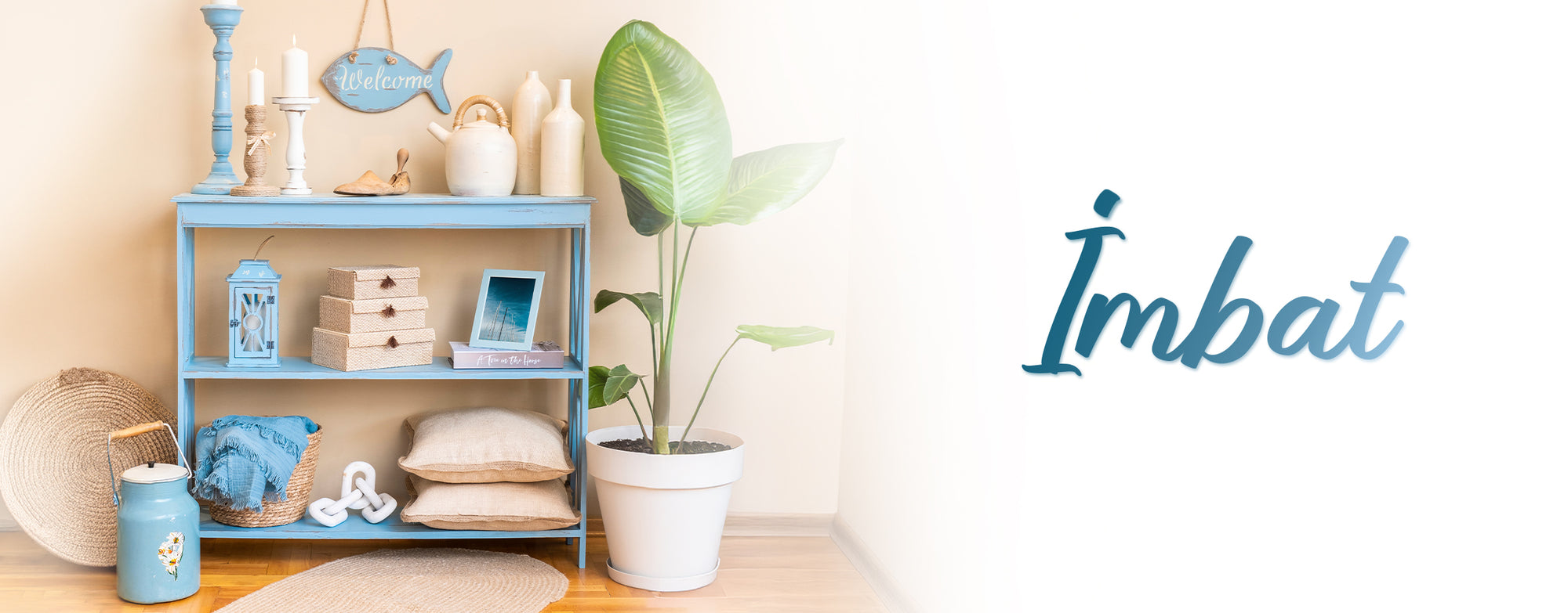 Bu koleksiyon; soft mavi tonlarında tamamlayıcı mobilyalar, doğal sepet örgüler, sahil temalı dekoratif objeler ve el boyaması detaylar ile modern sahil stiline özgü bir tazelik sunar. İmbat Koleksiyonu, evinizde yazdan kalan serin bir meltem hissi uyandırır.