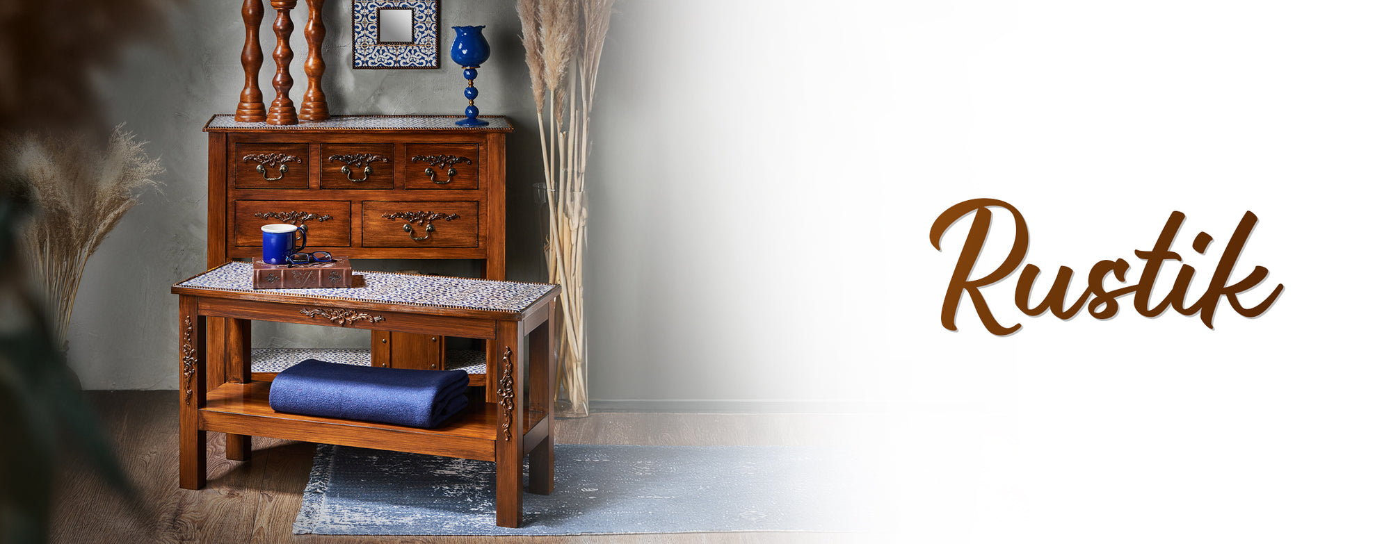 Bu koleksiyonda masif ahşap yüzeyler, el işçiliği oyma detaylar, eskitme dokular ve klasik rustik formlar bir araya gelir. Rustik Koleksiyonu, modern şehir evlerinde doğal bir denge yarattığı gibi, kır evi, köy evi ve vintage dekorasyon anlayışlarında da güçlü bir tamamlayıcıdır.