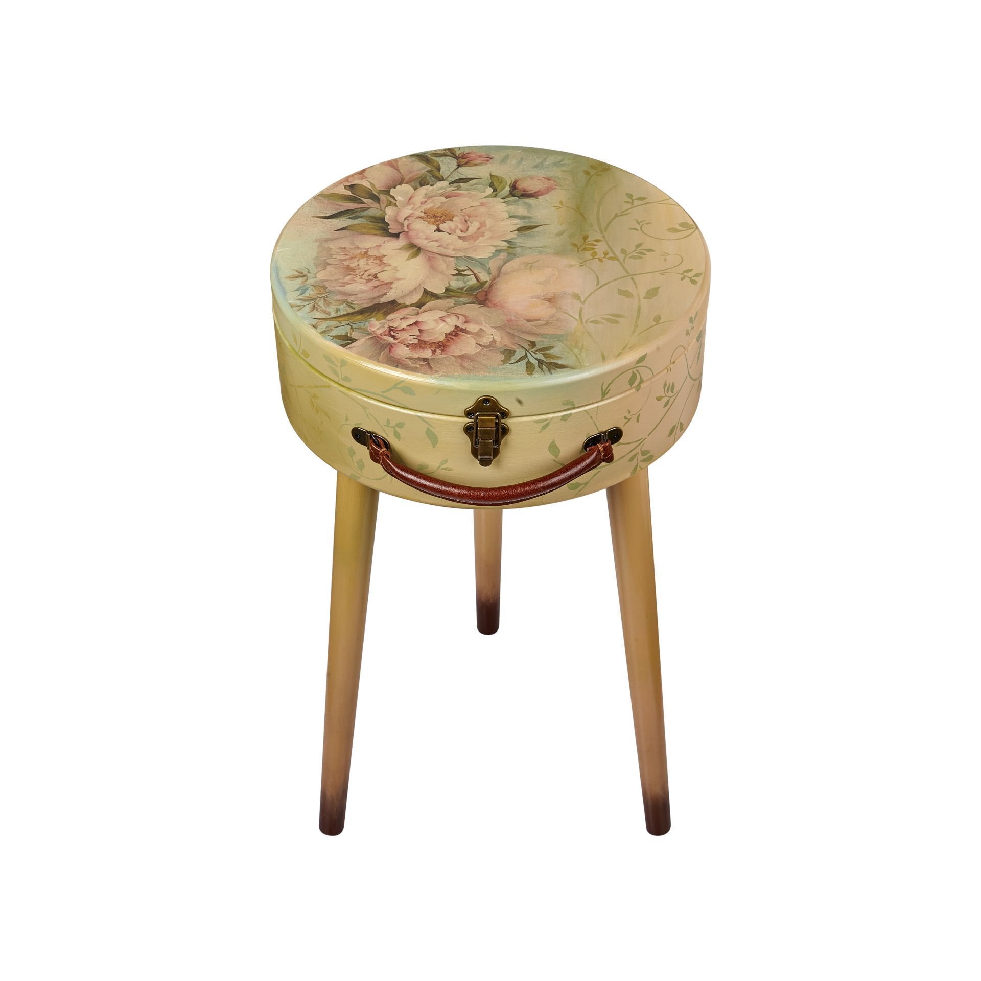 Zemin boyama işlemi tamamlandıktan sonra üzerine pirinç dekupaj ve stencil eskitme uygulanmıştır.