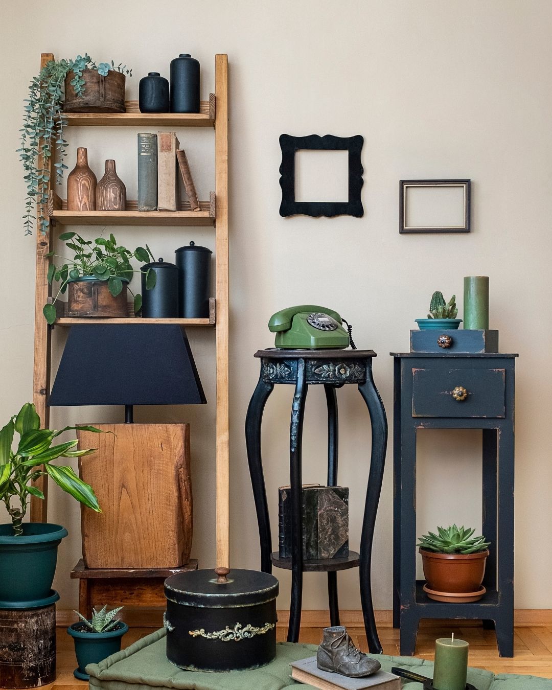 Hazan Yan Sehpa Saksılık, alt ve üst tablalarda ağacın doğal dokusunun görünmesi için transparan bir boya kullanılmış, oyma ve ayaklarda ise siyah üzerine renkleri hep aynı fakat dokunuşları farklı olan uygulamalar yapılmıştır.