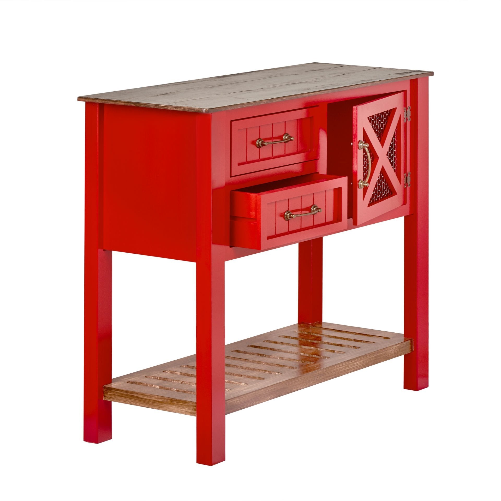 Kırmızı Dresuar, country tarzının sıcak ve doğal dokusunu canlı kırmızı tonu ile buluşturan şık bir tamamlayıcı mobilyadır. Antre, salon ve yaşam alanlarında dekoratif bir vurgu oluştururken fonksiyonel yapısıyla da pratik bir kullanım sunar.