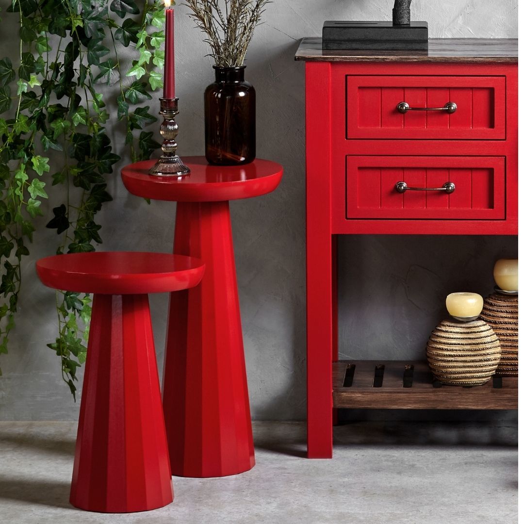 Kırmızı Mantar İkili Sehpa, şık ve fonksiyonel tasarımıyla farklı yüksekliklerde kullanım sunarak yaşam alanlarına estetik bir dokunuş katan özel bir settir. Canlı kırmızı tonu ve mantar formu sayesinde dekorasyonda dikkat çeken bir vurgu oluşturur ve her mekânda pratik bir tamamlayıcı olarak öne çıkar.