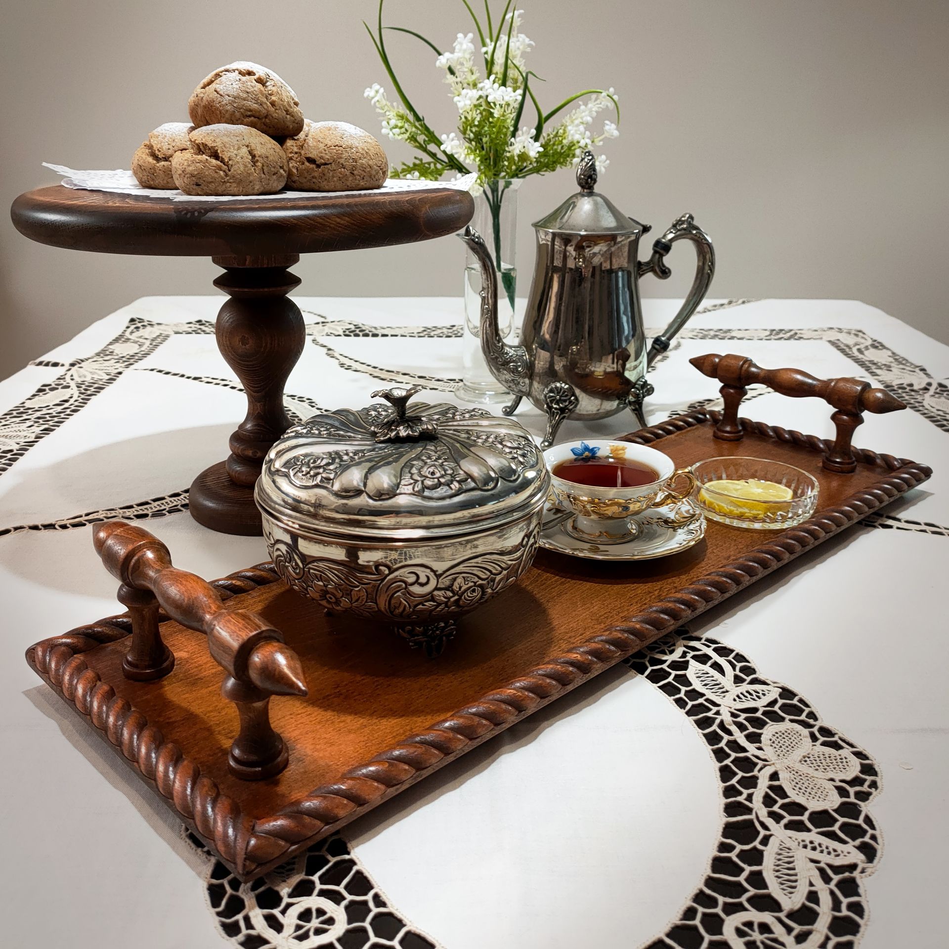 Masif Tepsi, tamamen doğal ahşap dokusu ve el işçiliğiyle hazırlanmış şık bir sunum ve dekoratif tamamlayıcıdır. Dayanıklı yapısı ve estetik formu sayesinde hem servislerde hem de masa üstü düzenlemelerinde sıcak ve doğal bir atmosfer oluşturur.