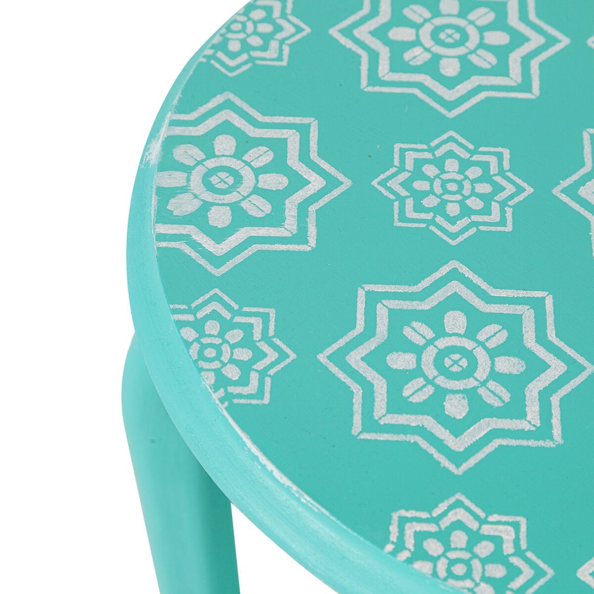Zemin boyama işlemi tamamlandıktan sonra üzerine stencil ve eskitme uygulanmıştır.
