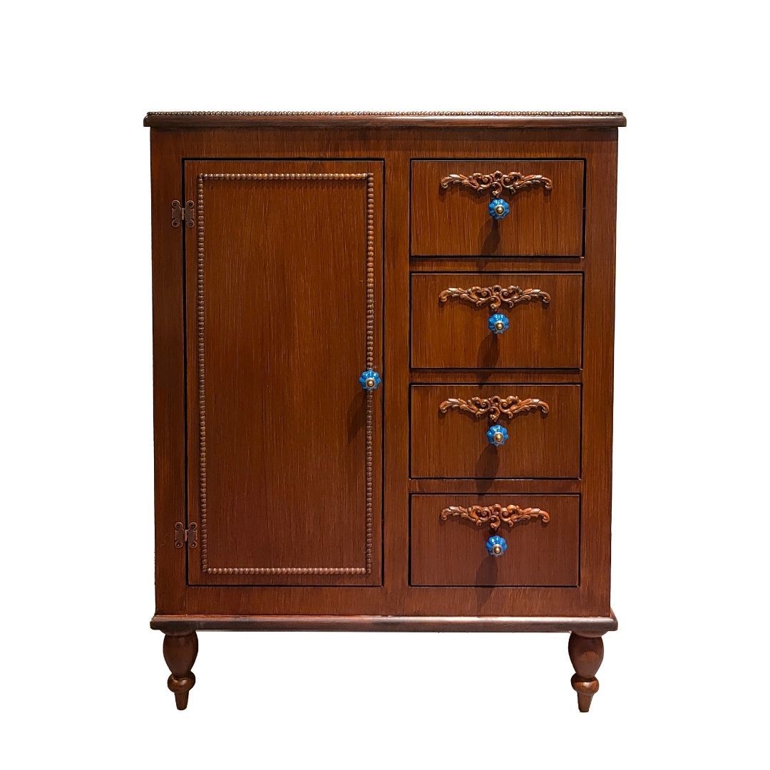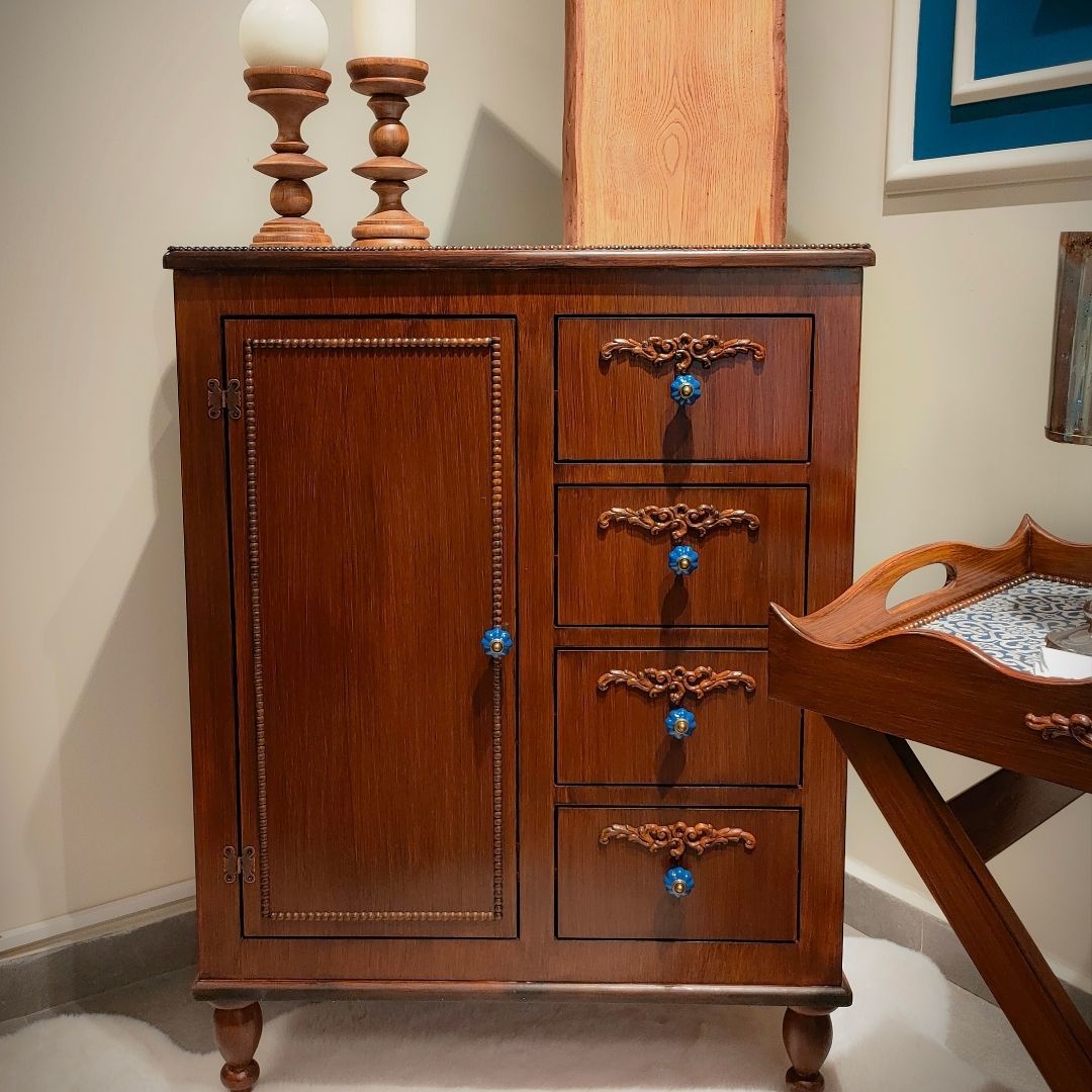 Rustik Şifonyer, doğal ahşap dokusu ve el işçiliği detaylarıyla yaşam alanlarına sıcaklık ve karakter katan şık bir depolama ünitesidir. Geniş çekmece yapısı sayesinde pratik kullanım sunarken rustik dekorasyonun sade ve doğal çizgilerini mekâna taşır.