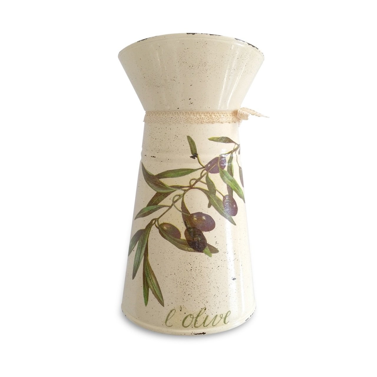 Zeytinli Ekru Sürahi 25 cm, galvaniz yapısı ve zeytin deseniyle country tarzına sıcak bir dokunuş katan dekoratif bir sürahidir. Yalnızca dekor amaçlı kullanılmalıdır; gıda ile temas ettirilmesi önerilmez. Çiçek aranjmanlarında, raf ve masa üstü dekorlarında şık bir tamamlayıcı olarak öne çıkar.